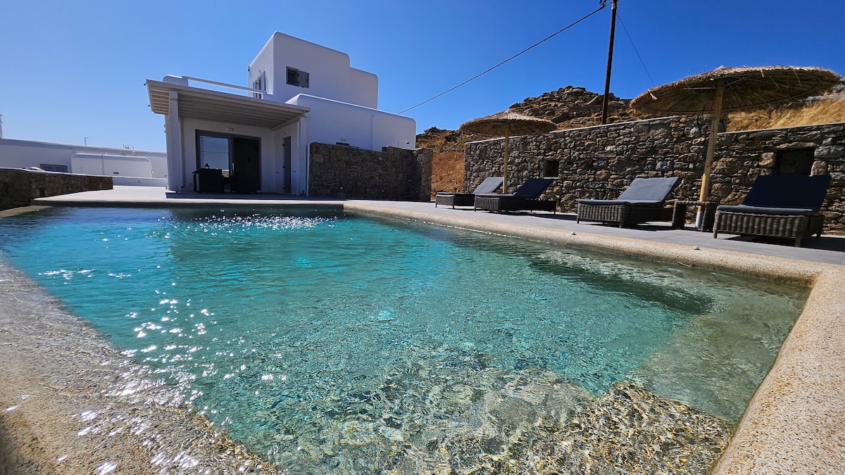 Outdoors, guests can enjoy a private swimming pool and inviting lounge areas,perfect for unwinding, entertaining and taking in unforgettable sunsets over Mykonos’ most iconic landmarks.