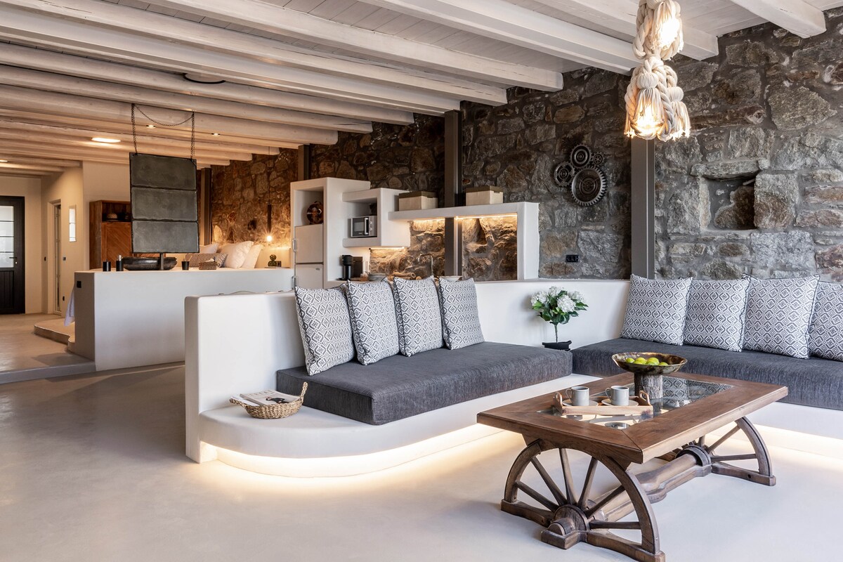 Perched on the hillside of Agios Petros, near the traditional charm of Ano Mera village, the Makani Deluxe Suite 7 with Hot Tub is part of an intimate complex of seven individual boutique suites, offering privacy, comfort and sweeping views over the island.